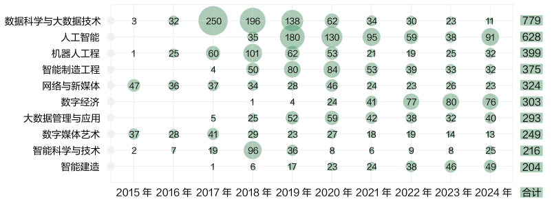 高校新增专业的布点环境,就像教育范畴的“风向标”和“晴雨表”,可以或许灵敏地反映了国度成长、社会需乞降将来就业市场的趋向。对于高考生和家长来说,深切解读这些消息,具有极其主要的计谋意义。下面就跟优意愿一路领会近十年高校专业的新增环境。